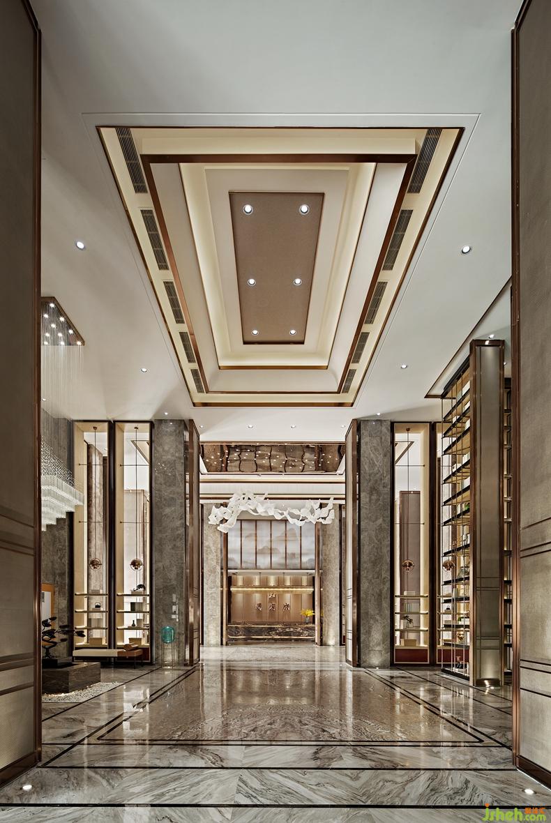 過廳小景設(shè)計融入安徽標(biāo)志性景觀迎客松,以此表達(dá)熱情歡迎五湖四海的賓客來到國賓府。整瑪瑙玉大理石鋪貼,匠心獨刻的精致紋理,顯露著沉穩(wěn)從容的文化底蘊,簡練的線條凸顯優(yōu)雅的質(zhì)感,高貴而低調(diào)。
