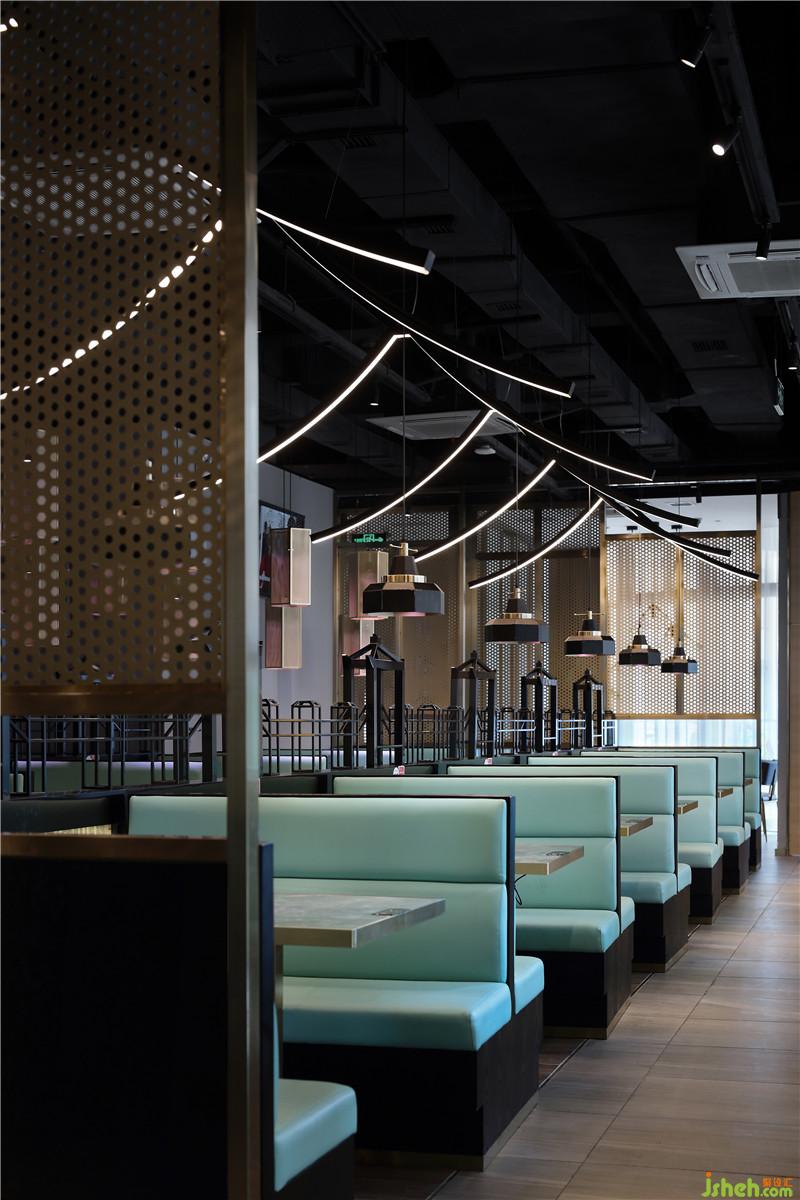 風(fēng)格理念:本案餐廳以汕頭牛肉火鍋為特色,因此餐廳的設(shè)計(jì)從當(dāng)?shù)貍鹘y(tǒng)文化、地標(biāo)性建筑、風(fēng)景中提煉元素。并進(jìn)行分解和重組,運(yùn)用現(xiàn)代的語言來表現(xiàn),將傳統(tǒng)與現(xiàn)代融合在同一空間內(nèi),創(chuàng)造出一個(gè)獨(dú)特的用餐的空間。餐廳設(shè)計(jì)