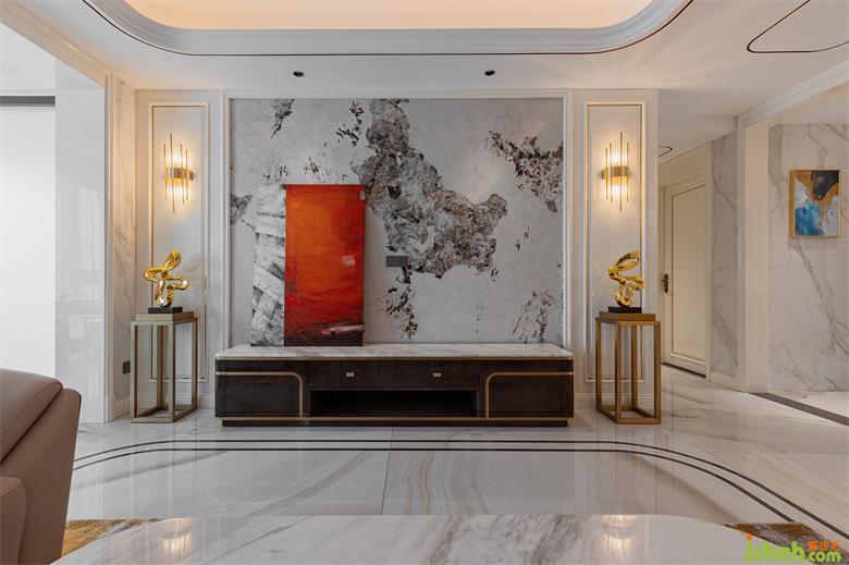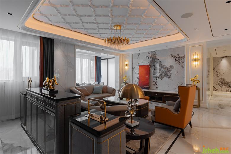 本大平層設(shè)計位于五緣灣核心地段,屬于精品大平層戶型,設(shè)計風格以簡歐輕奢為主。設(shè)計師在顛覆傳統(tǒng)的歐式風格中,融入混搭與現(xiàn)代輕奢元素后,更加凸顯傳統(tǒng)與現(xiàn)代的魅力。主體采用暖白色調(diào),運用素雅灰作為搭配色,少量橙色、藍色作為點綴之筆,簡歐與現(xiàn)代輕奢的結(jié)合,使效果上沒有像傳統(tǒng)歐式那么豪華,但又不會太簡單,簡約中透出精致和大氣之感,也映襯出主人不凡的生活品味。