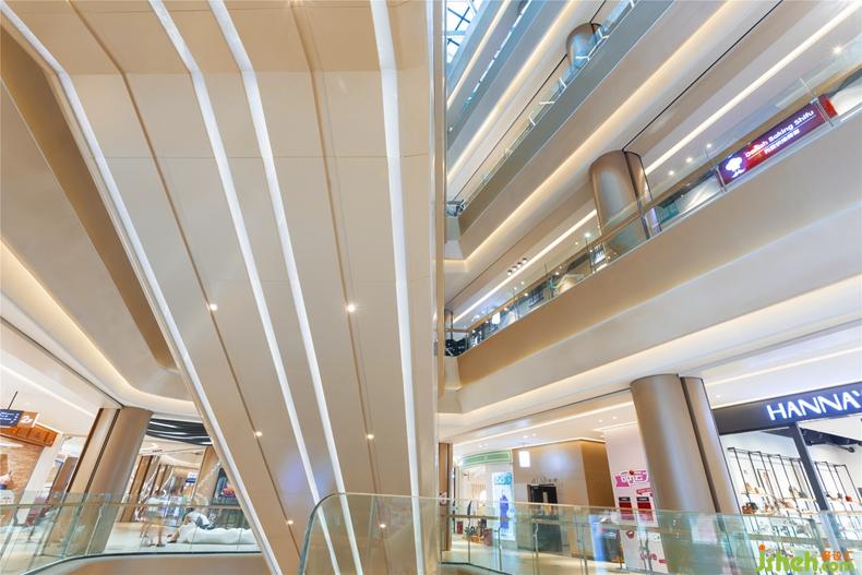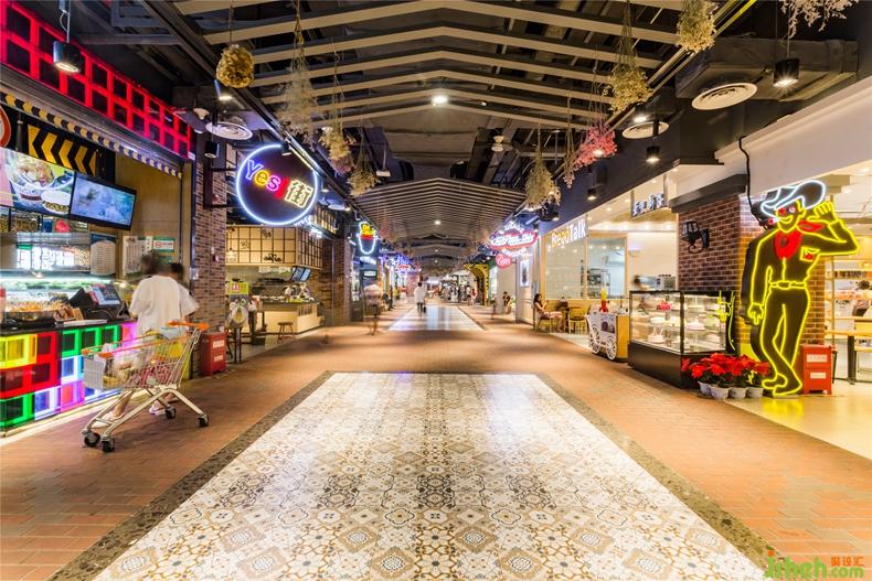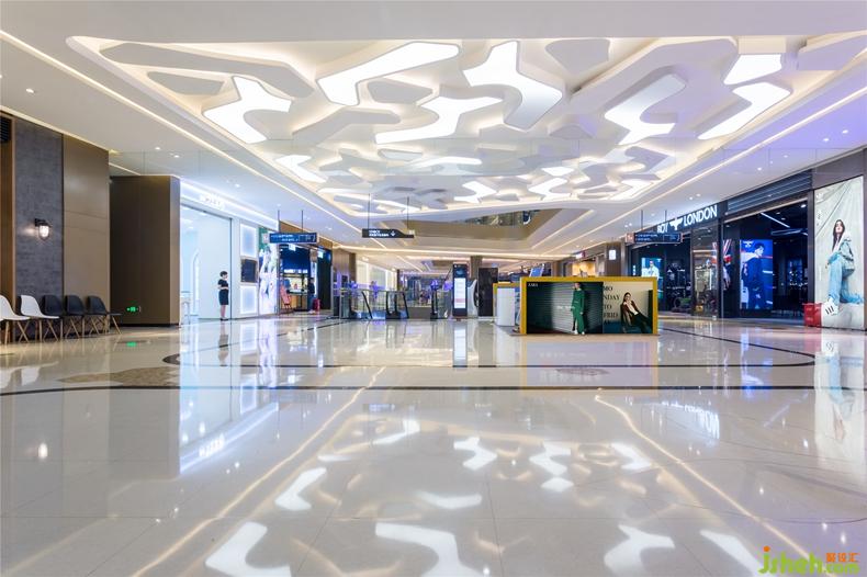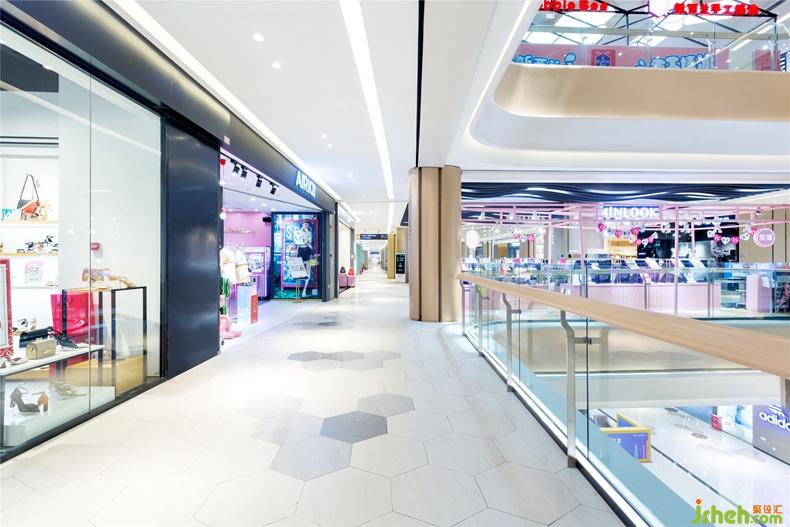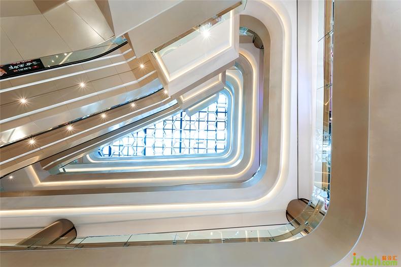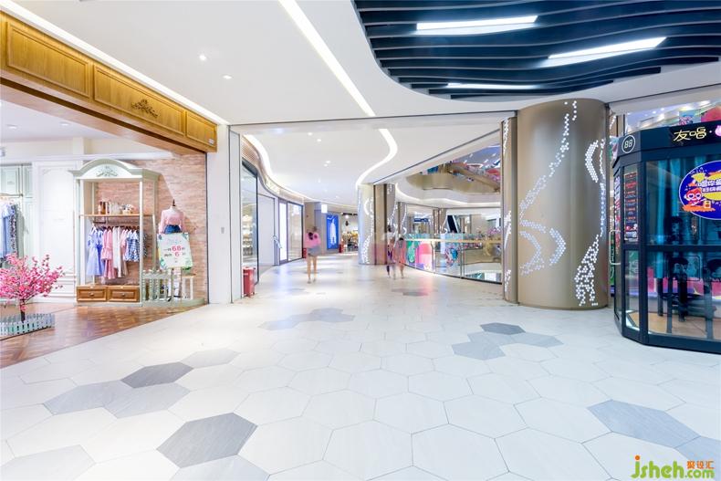 由蘇州園林的窗花提煉出來的六邊形元素,運用于整個商場的設(shè)計,在燈具上、在鏡子中,與中庭、地面、景觀相映成趣,整個空間在趣味中體現(xiàn)出一種整體感。設(shè)計公司用現(xiàn)代時尚的手法展示具有人文關(guān)懷的感受,在個性化的購物空間中增加客戶記憶,讓客人再次流連忘返,延長購物的體驗時間和增加回頭率。