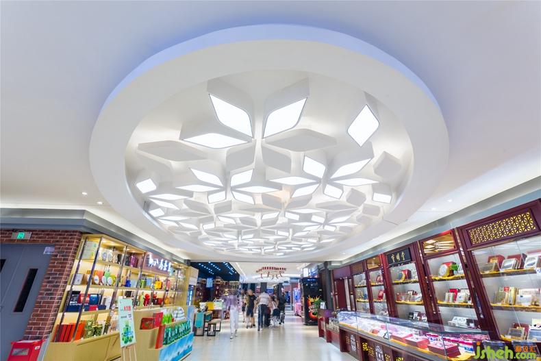 設計公司設計師獨具匠心,百貨中的中島臺、服務臺、休息區(qū)、天花和墻面設計上結合了室內的空間功能,拓展了顧客的體驗感與觀感,向人們展示新思維下的蘇式園林設計新意向。