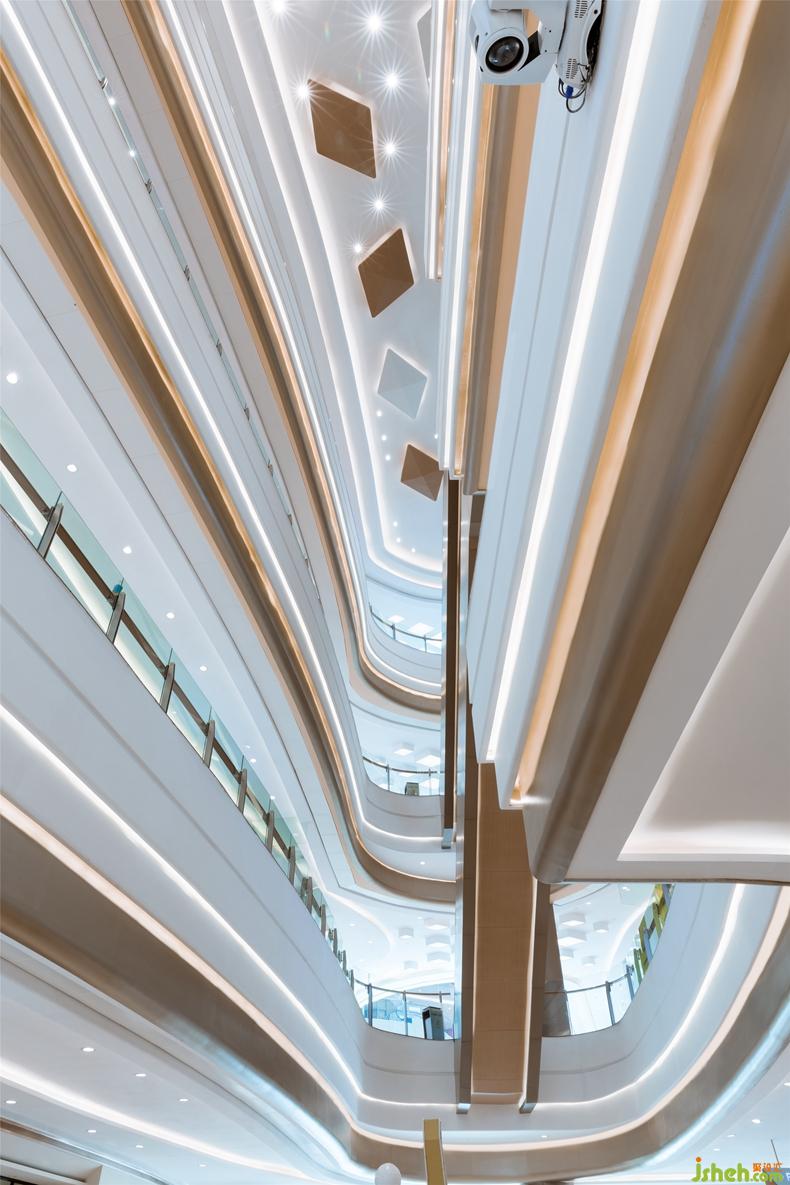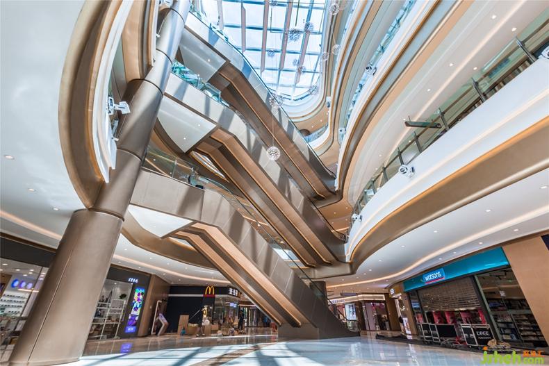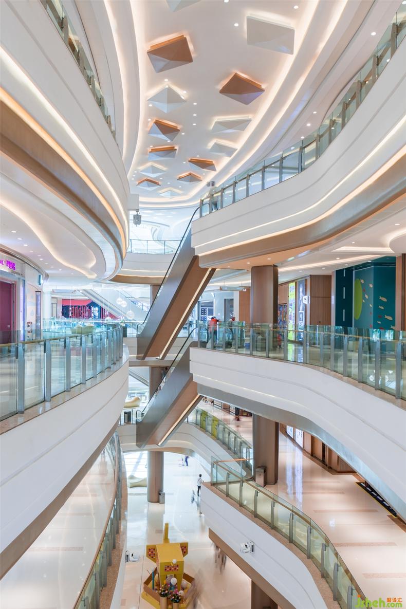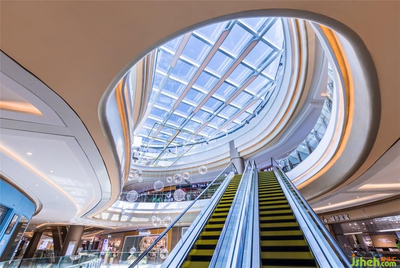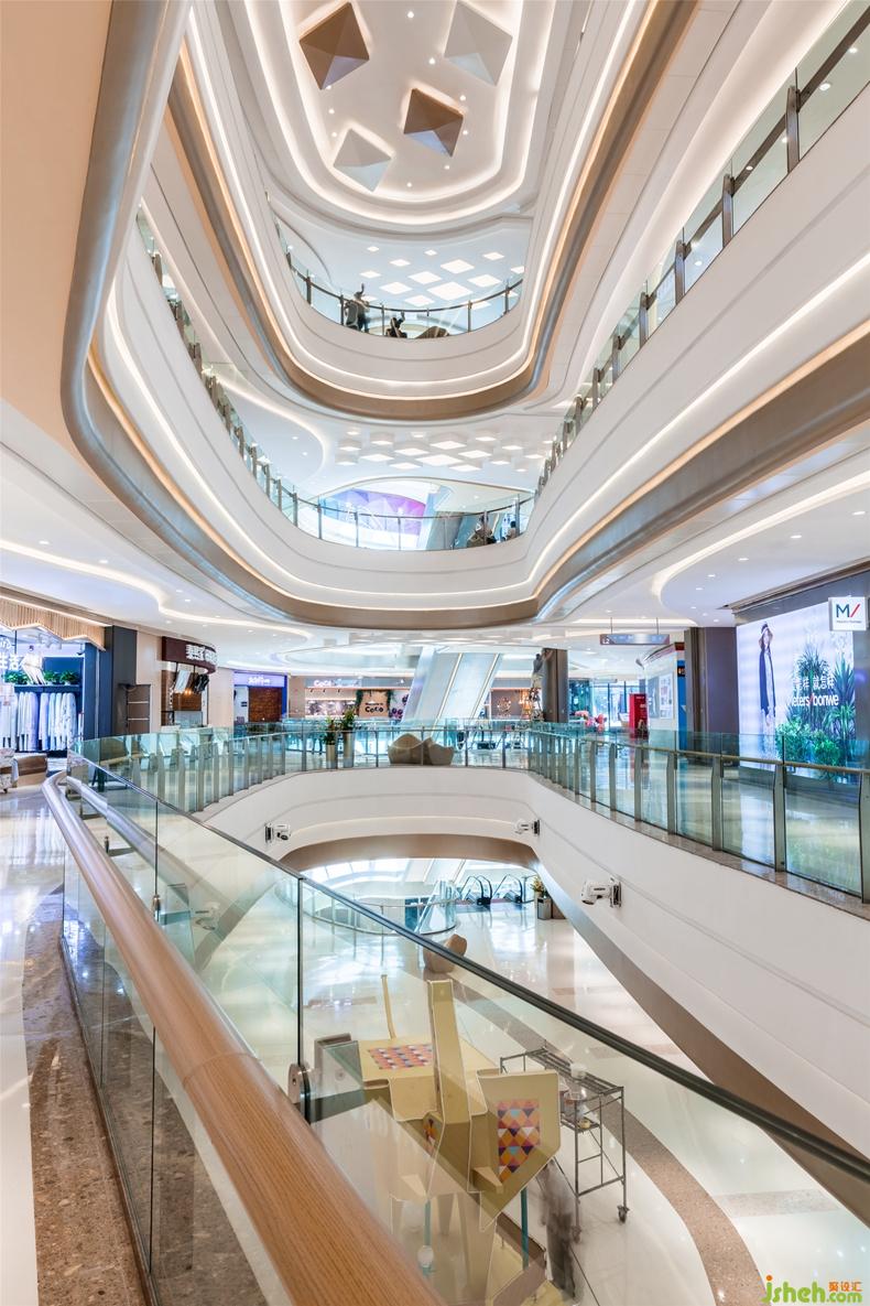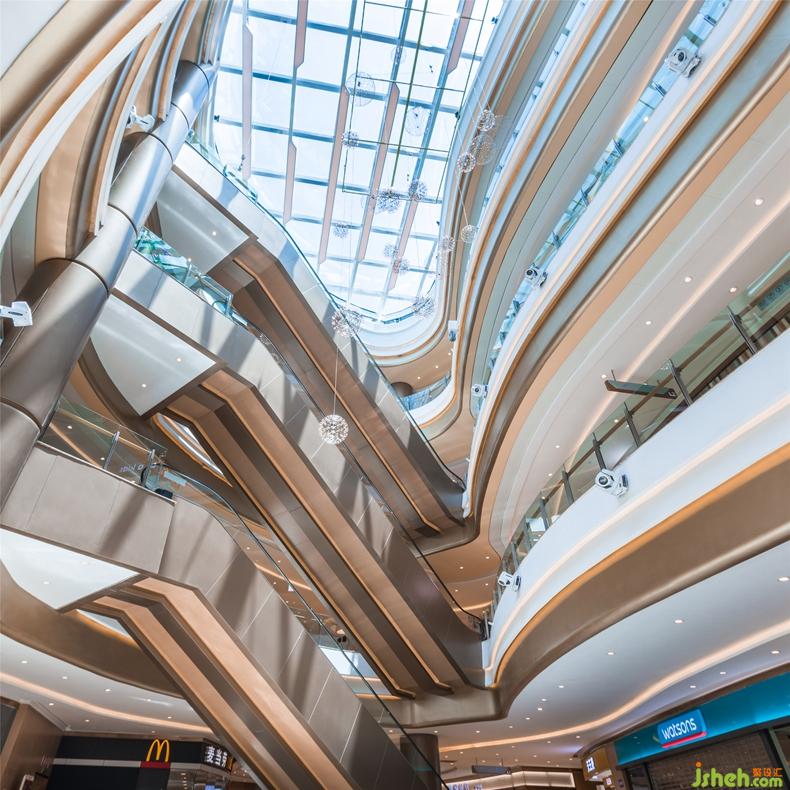 線條與燈珠的球體從中空落下,設計公司引入山城夜空的璀璨繁星;垂直綠化有節(jié)奏的分層點綴,帶出置身生態(tài)環(huán)境的感受。顧客是這里的主角,店鋪的氛圍親密而舒適,業(yè)態(tài)包攬了家庭生活的方方面面,沿著中庭的扶梯漫不經(jīng)心的閑逛,電梯的便捷提示你城市的變遷,然而生活卻依然如此,安逸而閑散。