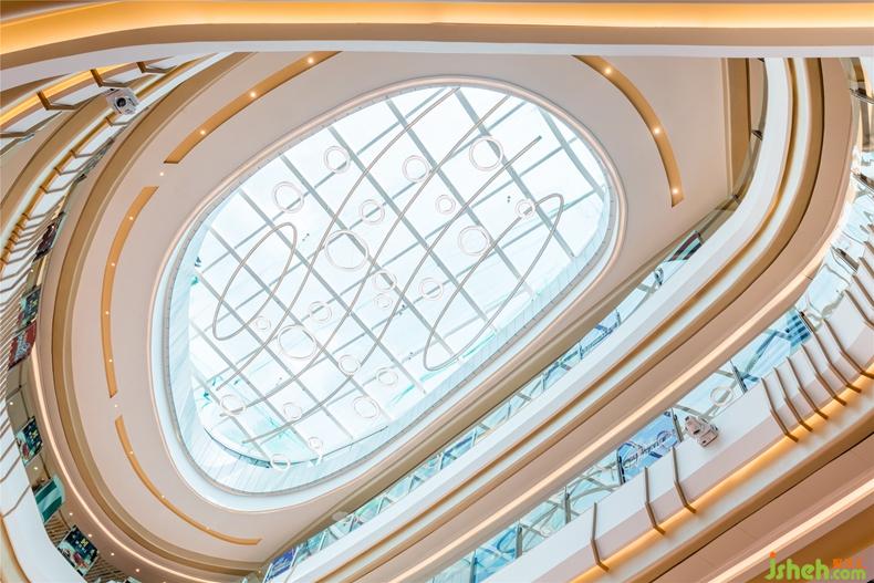 自由組合卻環(huán)環(huán)相扣的燈具從中庭的天空隨意垂下,是以藝術(shù)的語言表達(dá)“記憶的蟲洞”,在繁星璀璨的夜晚,它與天空成為一體,回歸宇宙的懷抱。十八梯的臺階一眼望去連著了天,在奧園一號我們讓它來作為天花的裝飾,所不同的是,我們的排列在整齊中透出韻律感,讓空間可以輕吟淺唱。在重慶的輕霧中,距離的遠(yuǎn)近讓事物在同一個(gè)底色中表現(xiàn)出不一樣的深淺,這種重慶獨(dú)特的美感和詩意,設(shè)計(jì)公司希望一低頭就能發(fā)現(xiàn),于是在地面的鋪裝中,設(shè)計(jì)公司用深深淺淺的米色,排列出簡單的幾何圖形的韻律感,它流露出時(shí)尚的氣息,從腳下蔓延至你的生活。屋頂設(shè)置的花園式餐飲區(qū),讓你從俯瞰城市的角度,享受自然與美食輝映的舒適愉悅,也感受生命的創(chuàng)造與偉大。