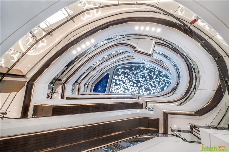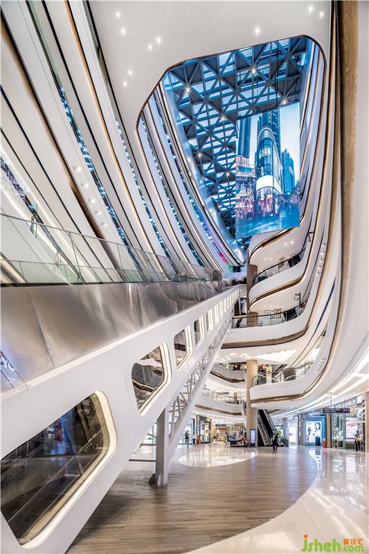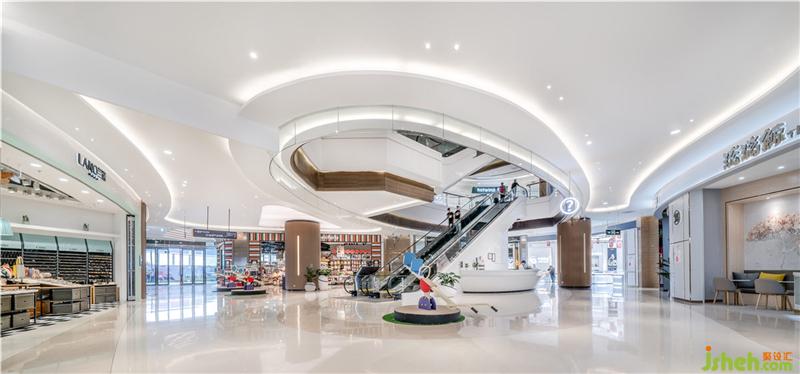空間整體狹長(zhǎng)有余、空曠不足,如何營(yíng)造整體的流暢感,并在這個(gè)基礎(chǔ)上形成高效的人流動(dòng)線,提高空間的使用率,成為設(shè)計(jì)要解決的首要問(wèn)題。在商場(chǎng)的主中庭,LB凌奔設(shè)計(jì)架起一座從一樓直通五樓的“飛天梯”,達(dá)到了最高效的人流輸送。這對(duì)于一個(gè)規(guī)模100000㎡的商業(yè)綜合體意義重大,意味著最大客流接待能力10%的提升。