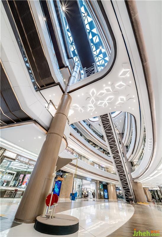 佛山紡織業(yè)在百年間經(jīng)歷浮沉,上世紀(jì)80年代初,廣東一針、二針、三針等大型國(guó)有紡織企業(yè)集聚佛山,老佛山的記憶中充滿著與紡錘相伴的童年趣事、青春年華。兩個(gè)次中庭以紡錘為形,中間大兩頭小,確保在任意位置、以任何角度,各樓層的商家均能一覽無(wú)余,空間也因此具有了最大化的視覺(jué)通透性,顯示出品位與檔次。