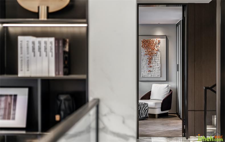 二層為主人私享空間。在這里,頂層復(fù)式設(shè)計以舒適為念,延續(xù)一層的宅形與氣質(zhì)的同時,整個空間圍繞主人的日常軌跡去延伸演繹,讓一切自然發(fā)生,渾然一體。布局連通整個二層空間,從臥房、盥洗室、衣帽間,再到書房、兒童房,兼具居家與親子照顧的便利性。