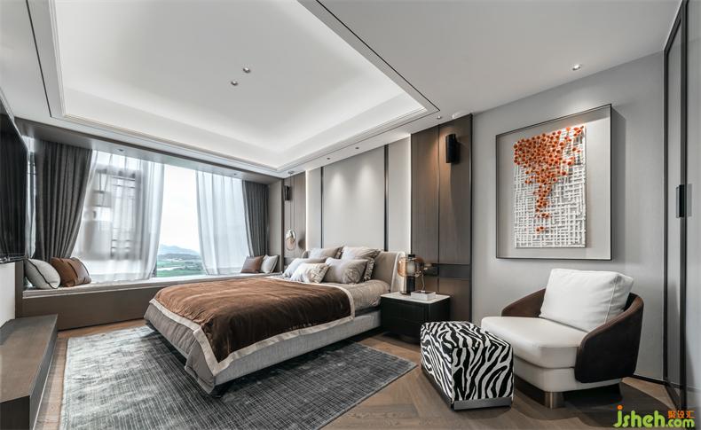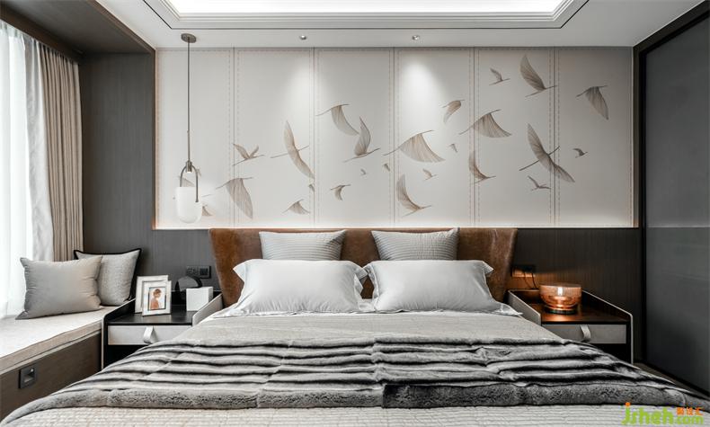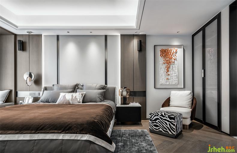 長輩房,感受到的是獨處時的平和寧靜,頂層復(fù)式設(shè)計更偏向于中式現(xiàn)代風(fēng),用實木、皮質(zhì)、棉麻等材質(zhì)填充視野,無主燈設(shè)計讓光影更柔和自然,突出舒適宜居的氛圍感。