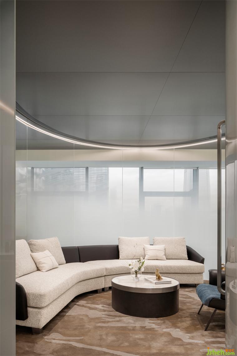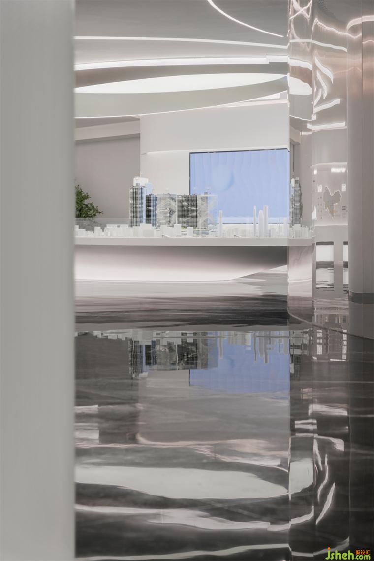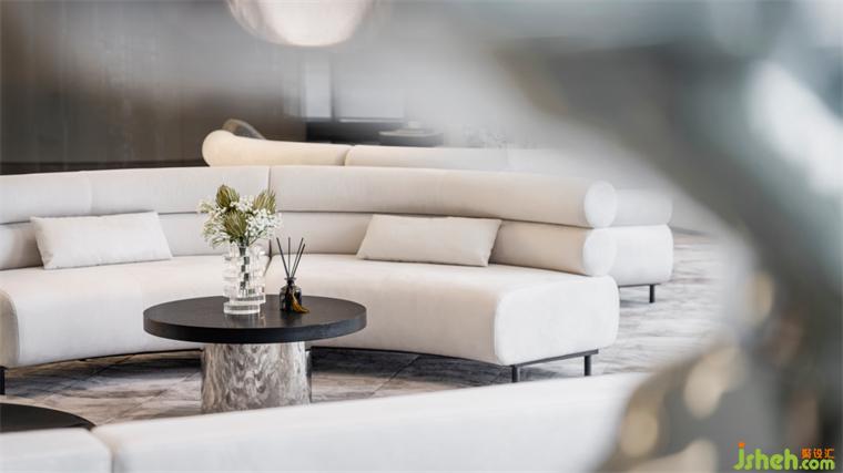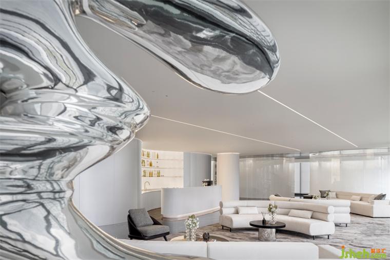 展示空間服務(wù)于商業(yè)目的,“如何塑造項目獨(dú)特的傳播符號”成為設(shè)計的重要課題。LB凌奔設(shè)計將曲線語言延伸到空間整體,在形體、動線、家具之間一以貫之,形成整體性的體驗(yàn)感。從而讓人們領(lǐng)會到這種普遍的聯(lián)系,展示中心設(shè)計形成本案的獨(dú)特記憶。