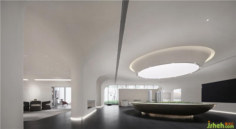 “美術(shù)館”內(nèi)大模型臺身形成“傘拱”覆蓋空間,使幾何分界位置變得模糊,在形態(tài)上呈現(xiàn)出一種具有時間性的展覽空間。
