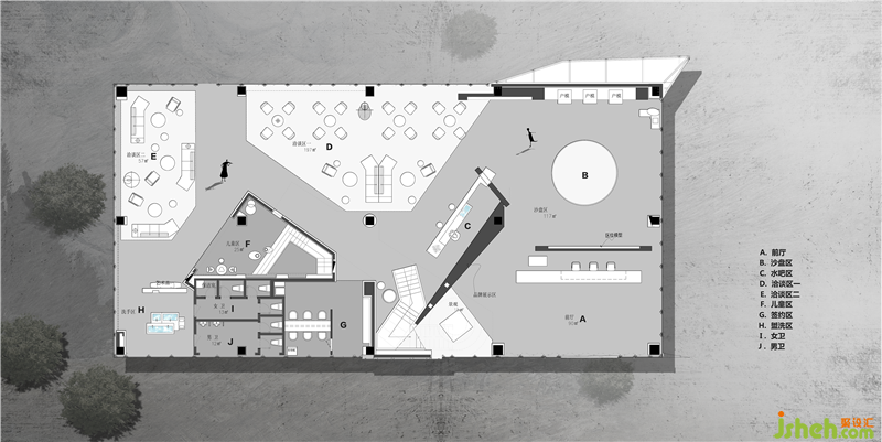 從徐州當(dāng)?shù)睾恿饕约爱?dāng)?shù)毓I(yè)環(huán)境中提取出設(shè)計(jì)靈感,同時(shí)結(jié)合建筑景觀現(xiàn)代線條元素,并將其貫穿于整個(gè)空間。運(yùn)用現(xiàn)代主義的手法重組,解構(gòu)空間,并結(jié)合當(dāng)代藝術(shù)融入之中。由此表達(dá)一個(gè)老城通過更新與設(shè)計(jì)煥發(fā)新的生命力。呼應(yīng)當(dāng)代人們對(duì)美的認(rèn)知及追求生活品質(zhì)提升的態(tài)度。