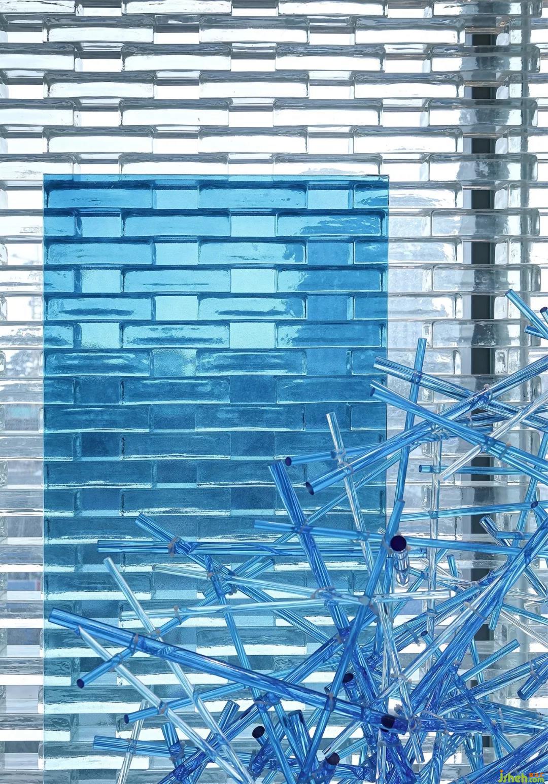 品牌展示區(qū),現(xiàn)代而不失格調(diào),無贅飾卻留下無限遐想。通透的視覺空間在入口展現(xiàn)出無限延伸的感受,由水晶磚墻帶來的自然光感投射,陽光和藍(lán)色相印成輝,宛如海浪點(diǎn)綴,猶如一陣陣海風(fēng)拂面,微暖的氣息令人舒暢。