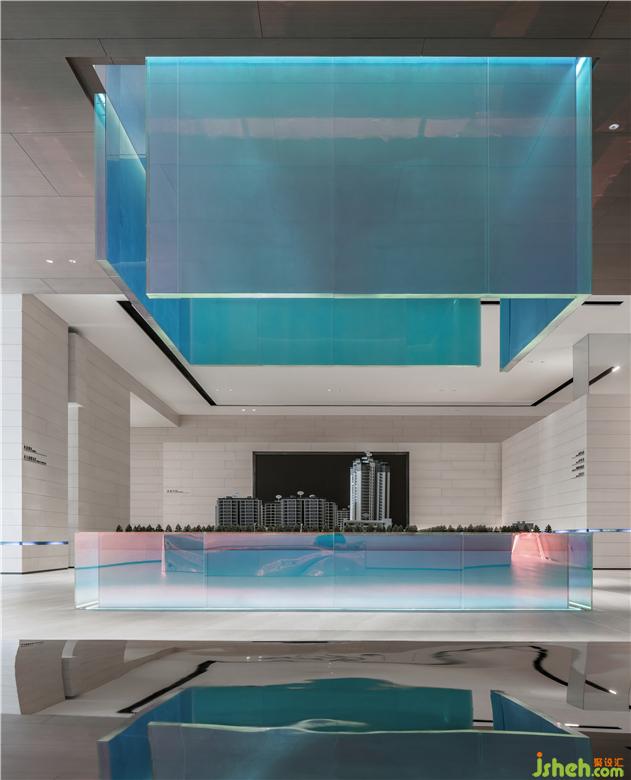 體驗(yàn)中心設(shè)計(jì)品牌展示區(qū),現(xiàn)代而不失格調(diào),無贅飾卻留下無限遐想。通透的視覺空間在入口展現(xiàn)出無限延伸的感受,由水晶磚墻帶來的自然光感投射,陽光和藍(lán)色相印成輝,宛如海浪點(diǎn)綴,猶如一陣陣海風(fēng)拂面,微暖的氣息令人舒暢。