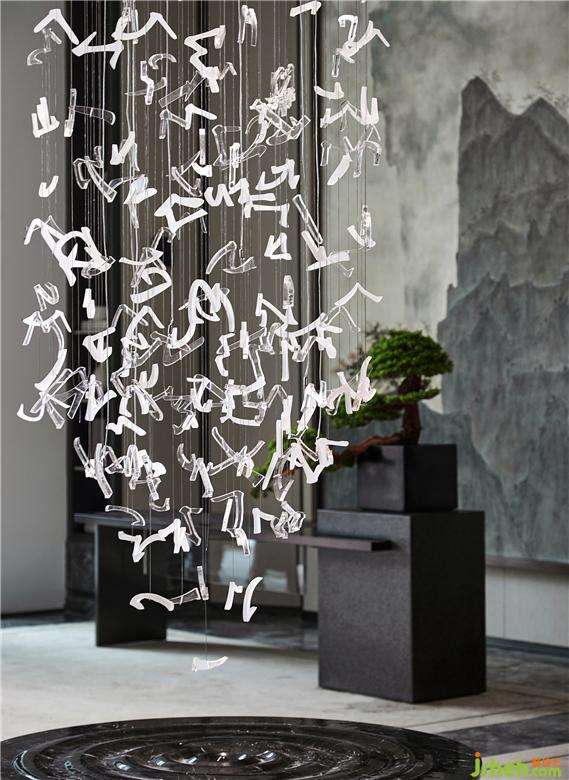 橫豎點折,撇捺彎鉤,將平面的書法,打磨成立體形狀,懸而掛之,光線的深淺自然呈現(xiàn)下筆的輕重。就是這寥寥筆劃,勾勒出上下五千年的文明,濺起歷史的圈圈漣漪。