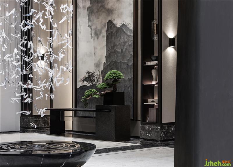 售樓處設計將自然的鬼斧神工融入這人文畫作,裂紋大理石就像隨意的潑墨,“或揮或掃,或淡或濃,為山為石,為云為水”。