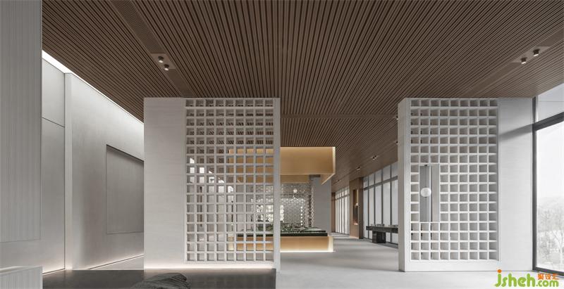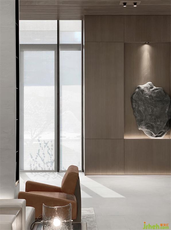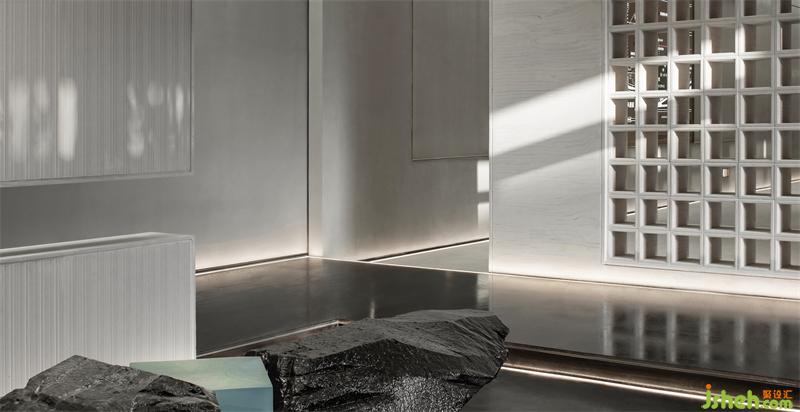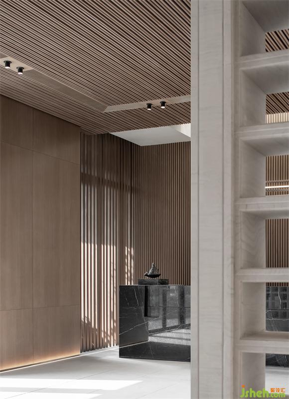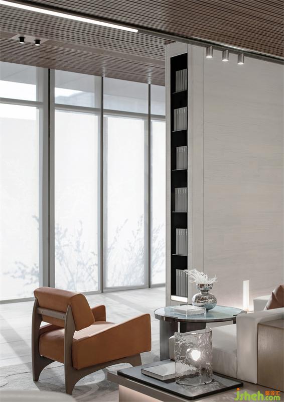 室內(nèi)空間延續(xù)建筑形態(tài)、捉光捕影;構建序列。空間大量運用了對稱的中國結構美學,或四角成對,或兩兩相對中,于步移景異間,都能看見優(yōu)雅的結構美。在這個美學空間,不斷看到了經(jīng)過淬煉的現(xiàn)代美學思維,顯出毫無違和的舒適與細膩。