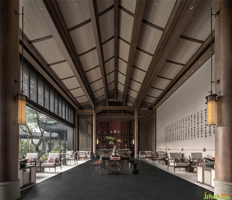 散客洽談區(qū)的布局,圍合而克制,但與其他空間因一切有了光的流動(dòng)和停留,而又讓彼此各自推向獨(dú)立,又在整體歸一中實(shí)現(xiàn)了互為對(duì)話。 這里,更像是一個(gè)不疾不徐等待清晨到來,或因流連暮色而靜靜發(fā)呆的一個(gè)空間。幻似時(shí)空隧道,一切應(yīng)了光的進(jìn)來、穿透或停留或離開,在自然與簡(jiǎn)單中平衡出諸多美的心境,寂寥而美好。