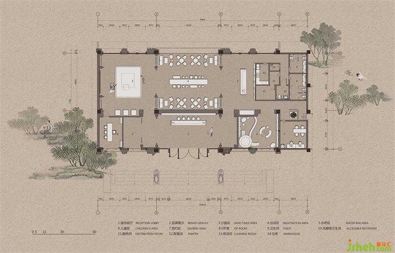 空間將時間與人文線索串聯(lián),售樓處設(shè)計(jì)用自然靜謐包裹雅正空間,再利用光影刻度將時間凝固保存,讓它們與空間中的藝術(shù)品一起回溯自然、出入古今。人在其中,如浸歷史的詩,如觸當(dāng)代的云,如沐湖面的風(fēng),任這般湖山意境交織出大道由心的從容,讓當(dāng)代的名人雅士能與先賢俊秀談笑風(fēng)生天地清。