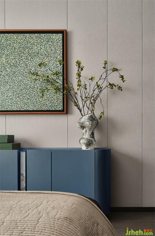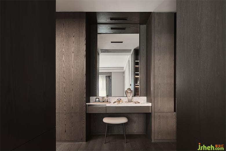 過道式的延伸使我們多了一份暇想,儲(chǔ)物格的面和臺(tái)面用同色紋路肌理相結(jié)合,延續(xù)了空間的搭配,使整個(gè)空間更加協(xié)調(diào)統(tǒng)一,南京樣板房設(shè)計(jì)打造出空間獨(dú)有的沉靜氛圍提升臥室的觀感。