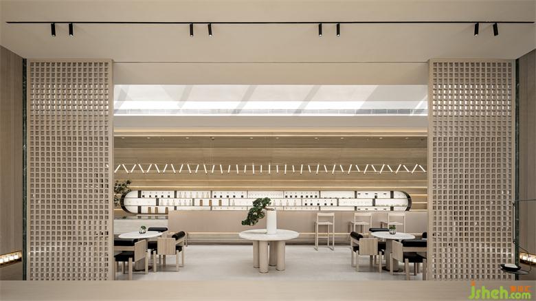 盎然生機(jī)與都市人文相遇,精雕細(xì)琢的水吧區(qū)隨即而出。南京深業(yè)南灣上府營銷中心設(shè)計(jì)延續(xù)了一貫的設(shè)計(jì)手法,干練的線條與規(guī)整的廓形構(gòu)成微妙平衡。