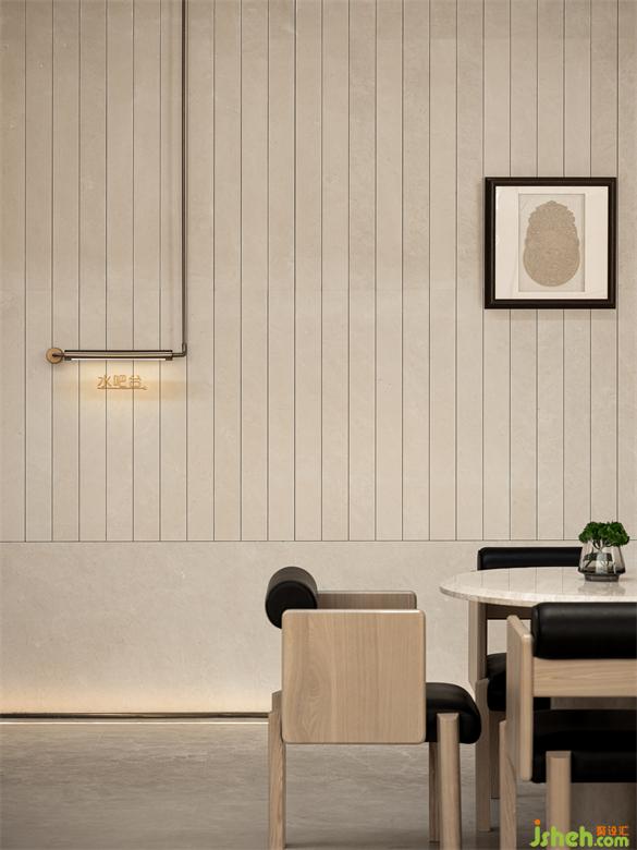 空間的構(gòu)思始于慣常,用微觀的情思去將每一個圖景串聯(lián),簡潔的立面與清冷的山石交映在溫潤的木飾面,南京深業(yè)南灣上府營銷中心設(shè)計(jì)線狀延伸解構(gòu)如框景,亦夢亦真。在光影間折射成一片自然之色。自然溫柔的原木,紋理曼妙的大理石,時(shí)間隨著光影在緩緩流動......