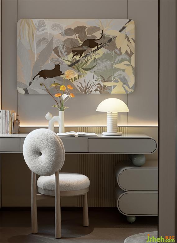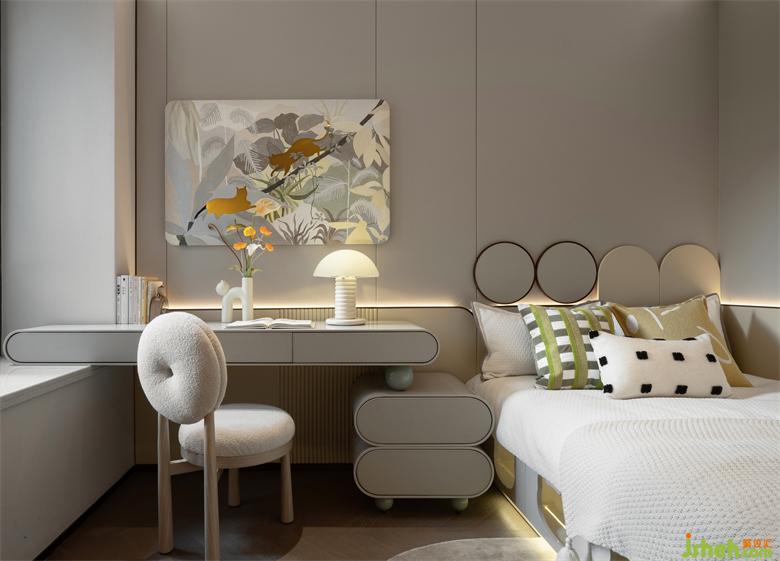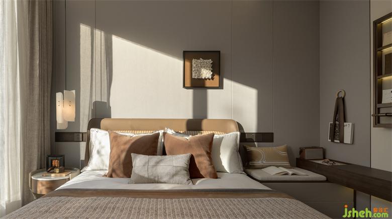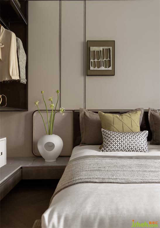 軟裝上選擇了木質(zhì)家具,床上的駝色皮革靠背及隨手放置讀物、香薰的小物件,廈門(mén)湖畔潤(rùn)璟樣板房設(shè)計(jì)整體搭配像奶油一樣融進(jìn)濃郁的焦糖奶茶,毫無(wú)違和感。