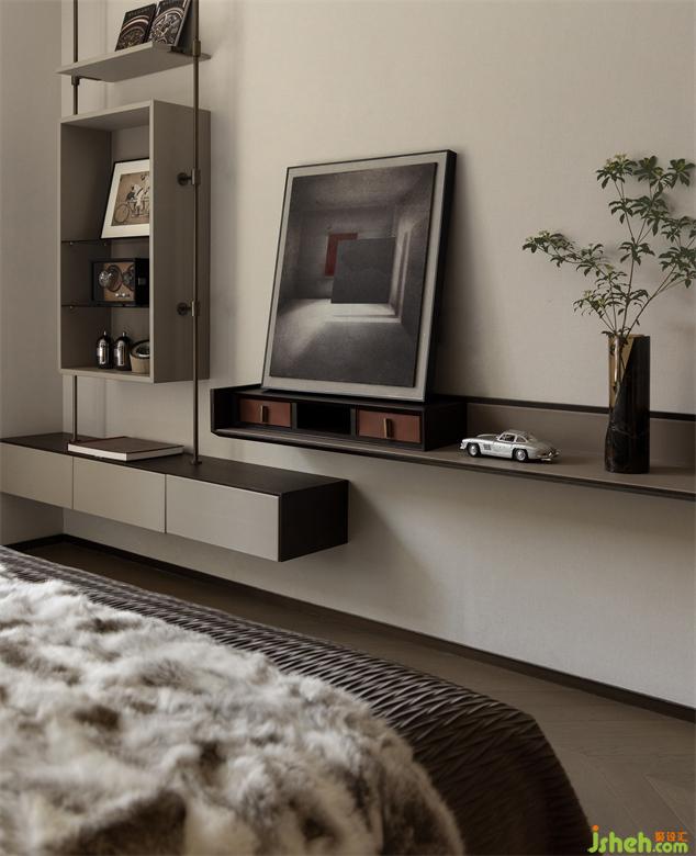 當(dāng)藝術(shù)的精神,透過空間的點(diǎn)點(diǎn)滴滴顯現(xiàn)出來,空間便多了細(xì)節(jié),多了深思。挑高的衣櫥,異形的茶幾組合,似流水般串聯(lián)起空間的藝術(shù)氛圍。