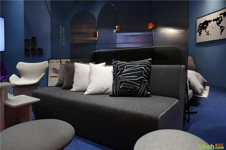 對角線的另一面,男生臥室則以大面積星辰藍(lán)作為空間主基調(diào),淺灰家具作為主體。以方形款式家具,搭配金屬主題藝術(shù)品,營造與女孩空間截然相反的空間性格。