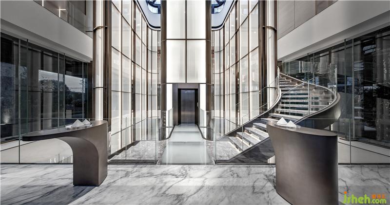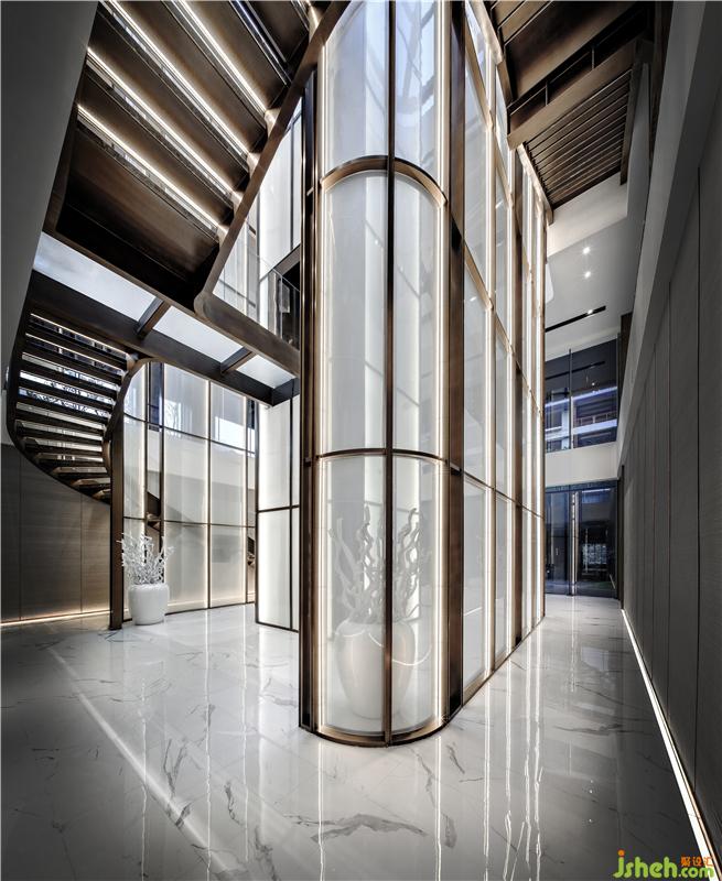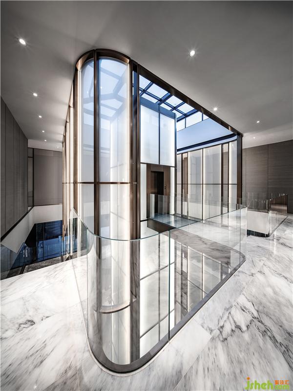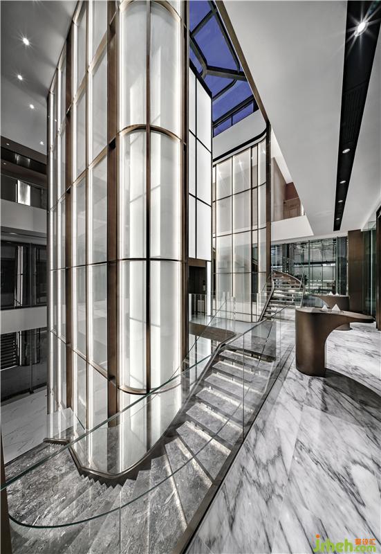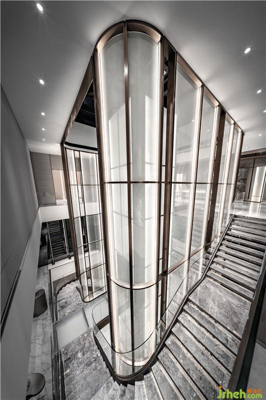 將樓梯通道與電梯間完美組合,