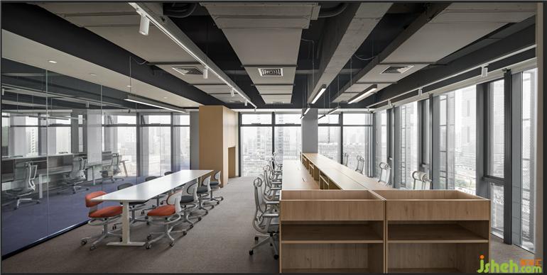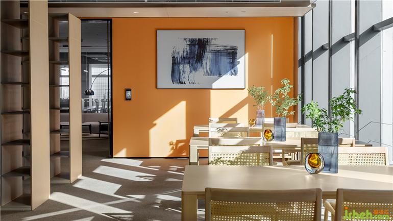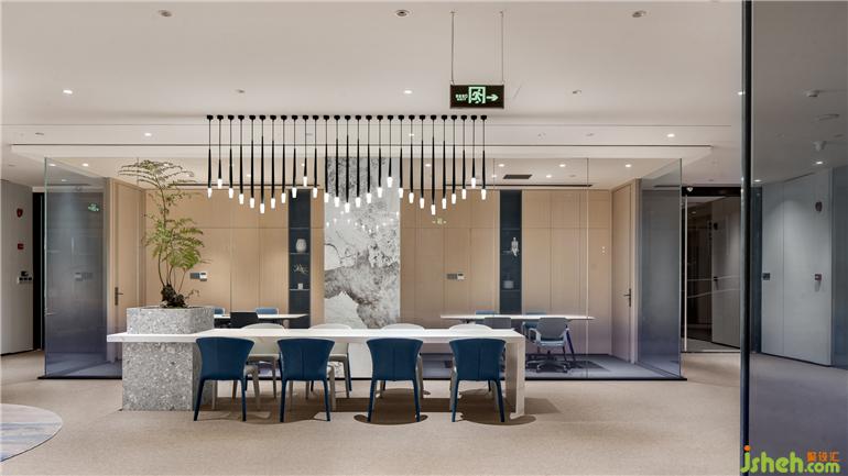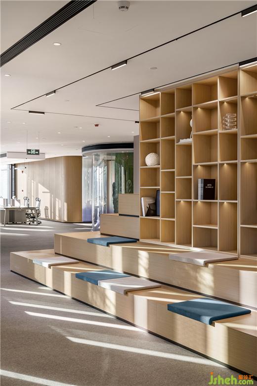 該方案整體的設(shè)計(jì)以原木設(shè)計(jì)搭配空間的黑白灰色調(diào)為主調(diào),辦公室設(shè)計(jì)整體的方案設(shè)計(jì)考慮到空間視野的開(kāi)闊以及利用到室內(nèi)采光的設(shè)計(jì)效果。設(shè)計(jì)師通過(guò)簡(jiǎn)約的設(shè)計(jì)手法運(yùn)用,營(yíng)造出嚴(yán)謹(jǐn)開(kāi)放、靈活穩(wěn)重的多維可能,隨著空間的明暗律動(dòng)延綿起伏。拋棄一些繁瑣的設(shè)計(jì)表象,還原空間最真實(shí)的目的表達(dá),一些局部的公共空間以弧形的形式的布局,外立面采用了藍(lán)色玻璃漸變的隔斷設(shè)計(jì),暖色條頂燈隨性進(jìn)一步呈現(xiàn)室內(nèi)舒適的辦公氛圍。在整體的環(huán)境中設(shè)計(jì)了一處閱讀處,階梯式分布不規(guī)則的跳色坐墊設(shè)計(jì)打破常有的生硬的閱讀空間,同時(shí)在整體的辦公空間中增添了很多綠植,營(yíng)造更為舒朗的辦公工作棲居,綠植與原木風(fēng)暖色的相結(jié)合給予人與空間更自由的呼吸和辦公空間。