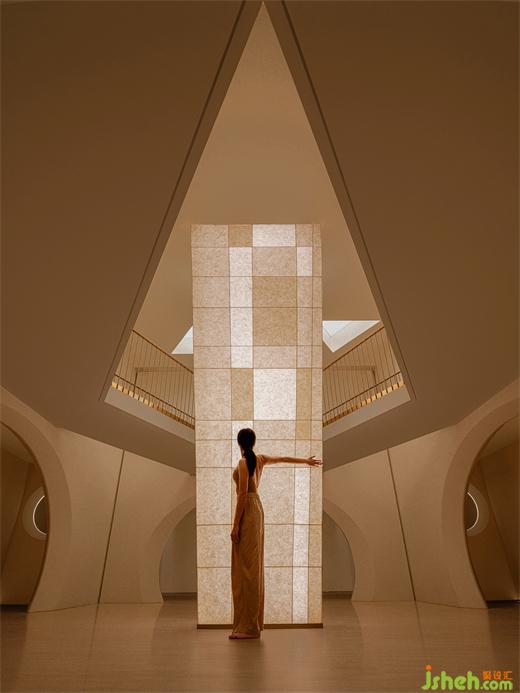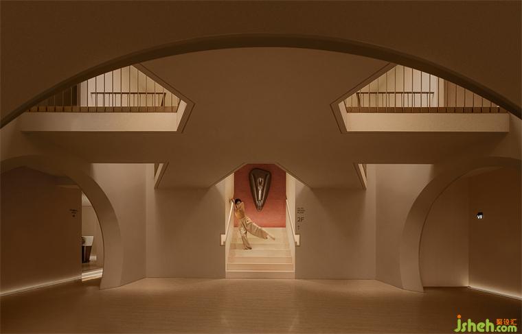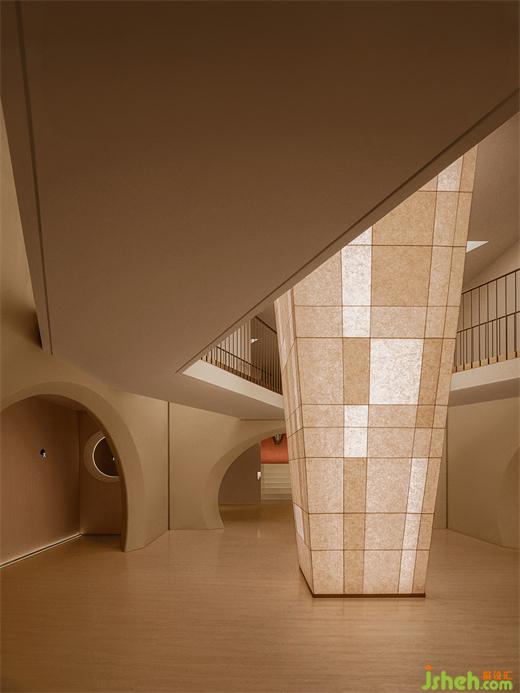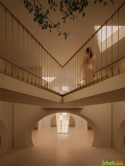 The central "symbol", a clear presence, vertically spanning across the two levels of the space. This top-to-bottom connectivity creates a shared spatial sequence within the originally enclosed space, making people feel closer and more relaxed in surroundings.