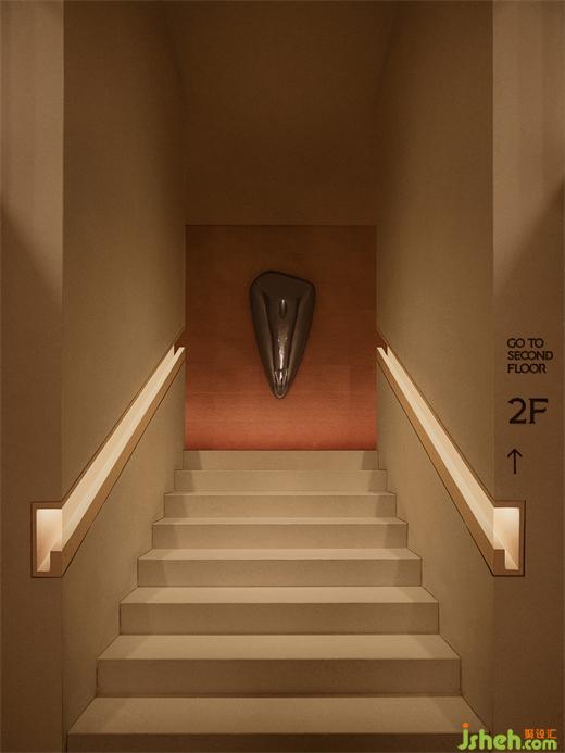 曲山、幽林,帶給人們始于基因的自然歸屬感。取于自然融于“自然”(暗指自然的醫(yī)美),美學中心設計用藝術的語言通過抽象化的自然曲度置于療愈空間的入口,好似“曲徑通幽處,禪房花木深”,治愈的森林入口就在此處,半遮半掩,引導著來客領略這忘情塵俗的意境。