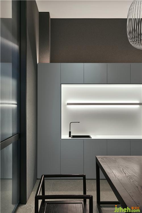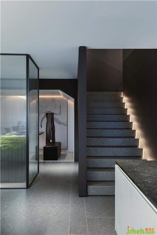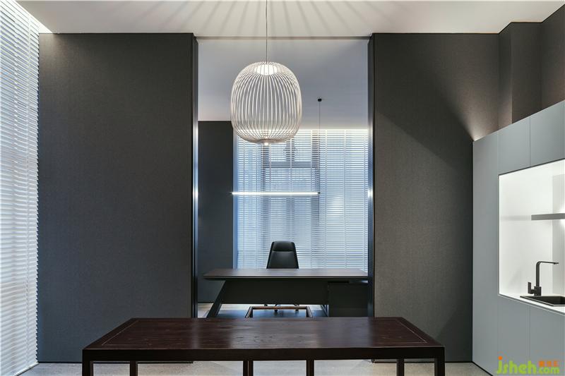 在總裁辦公室添加了黑白以外的、極強包容性的灰調,同時融入同樣低飽和度色彩的布藝和陳設等作點綴,空間滲入嚴謹、細膩、典雅的特質,又是另一種感官體驗。