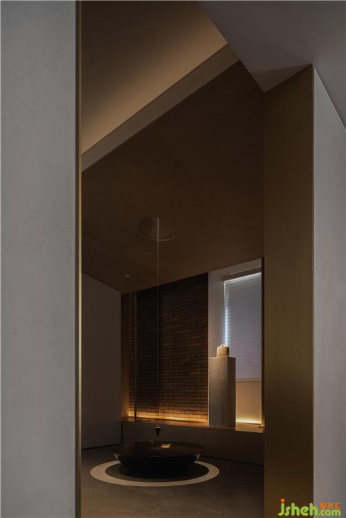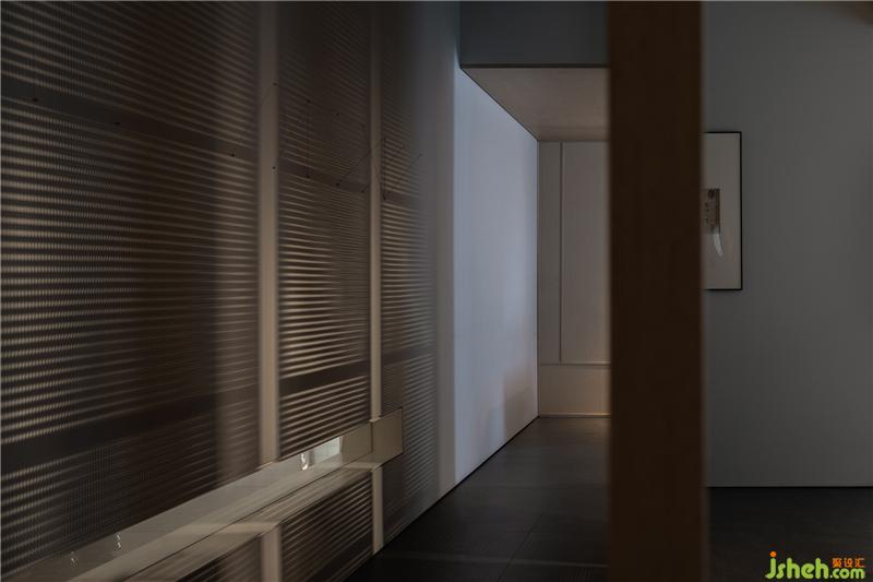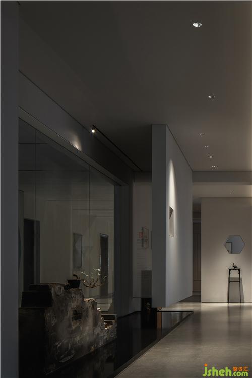 原毛胚結(jié)構(gòu)中,一根樓層消防主管道貫穿空間軸線,為了不影響層高與空間體驗(yàn)感,從門(mén)廳至茶室引入了屋檐概念,利用當(dāng)下的技藝呈現(xiàn)傳統(tǒng)園林中“屋檐”、“廊”的韻味,巧妙地解決了建筑規(guī)范和層高問(wèn)題。