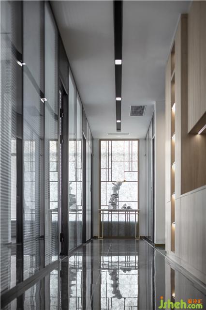 可容納多人的會(huì)議室,天花的造型與會(huì)議桌相呼應(yīng),大面積的落地玻璃讓整個(gè)空間更加明亮。