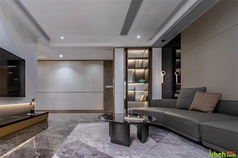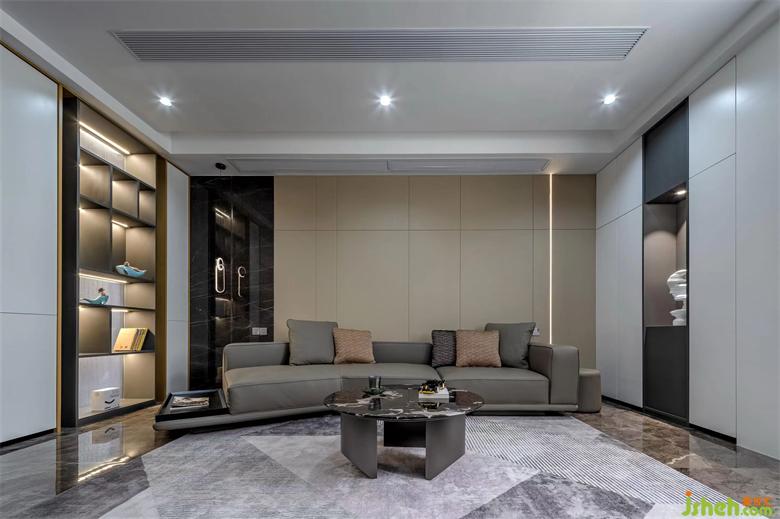 拾級(jí)而上,來(lái)到二樓多功能家庭廳,半圍合式的空間,構(gòu)建出審美與功能有機(jī)相融和的場(chǎng)域。別墅裝修設(shè)計(jì)通頂?shù)氖詹丶埽瑵M足了主人擺放藏品和書籍的需求。
