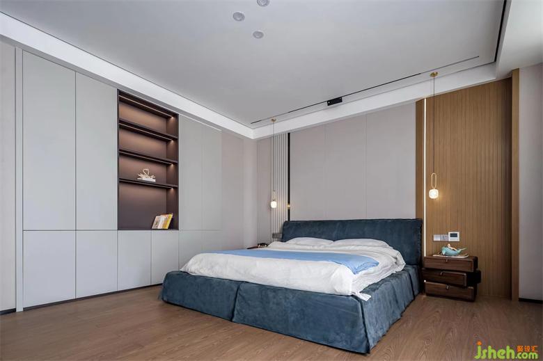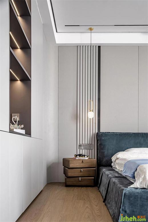 客臥運(yùn)用極具親和力的色調(diào)相融,給人以純凈優(yōu)雅之感。別墅裝修設(shè)計(jì)床頭背景墻木飾面板搭配金屬線條燈具,凸顯出墻體的立體感,刻畫簡(jiǎn)約利落的點(diǎn)線面設(shè)計(jì)。木質(zhì)家具散發(fā)溫暖的光澤感與精美細(xì)膩的絲質(zhì)床品相交輝映,以豐富的細(xì)節(jié)展現(xiàn)出低調(diào)、藝術(shù)的高尚生活品位。