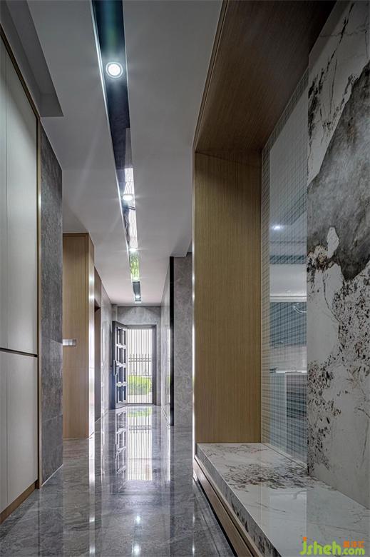 玄關(guān)自然紋理的大理石和溫潤(rùn)木飾面相結(jié)合,與光線產(chǎn)生美妙的交互,整個(gè)空間大氣不失細(xì)節(jié),呈現(xiàn)出當(dāng)代不凡氣質(zhì)。