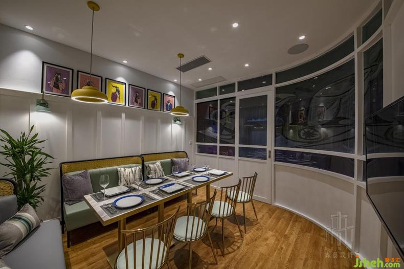 靜謐而簡約的VIP包間設(shè)計(jì),以原木地板為鋪墊,白色為主調(diào),點(diǎn)綴色彩藝術(shù)掛畫,更采用了弧形的隔斷墻壁設(shè)計(jì),猶如大自然的懷抱,身在其中,海闊天空,把酒言歡,盡顯風(fēng)情。