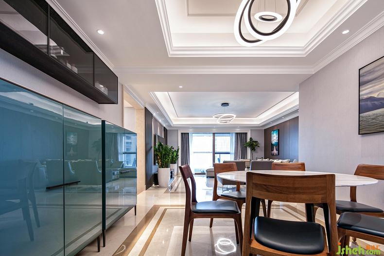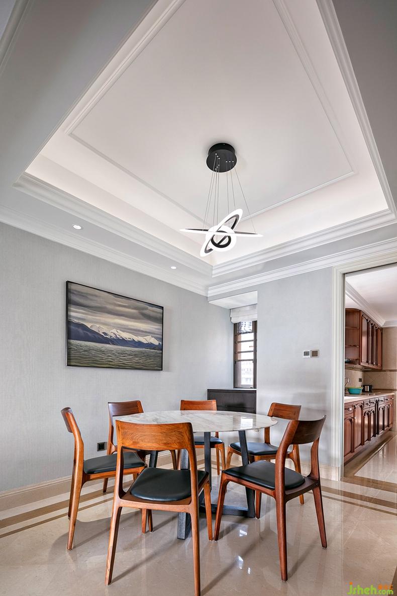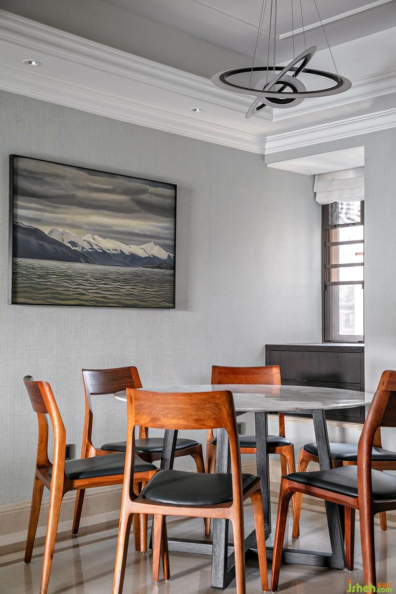 即便在有限的格局里,餐廳的設(shè)計依然秉持簡約大方、溫潤而雅的格調(diào),室內(nèi)設(shè)計師用燈光、鏡面柜的設(shè)計,增加空間層次,體現(xiàn)家的明朗和熙、純粹而溫馨。細(xì)節(jié)見品質(zhì)的北歐風(fēng)桌椅、獨特的燈飾,包括無垠風(fēng)光的陳設(shè)掛畫作選擇,也都頗有大自然的輕盈感,令人放松沉醉,享受這一刻的寧靜與祥和。