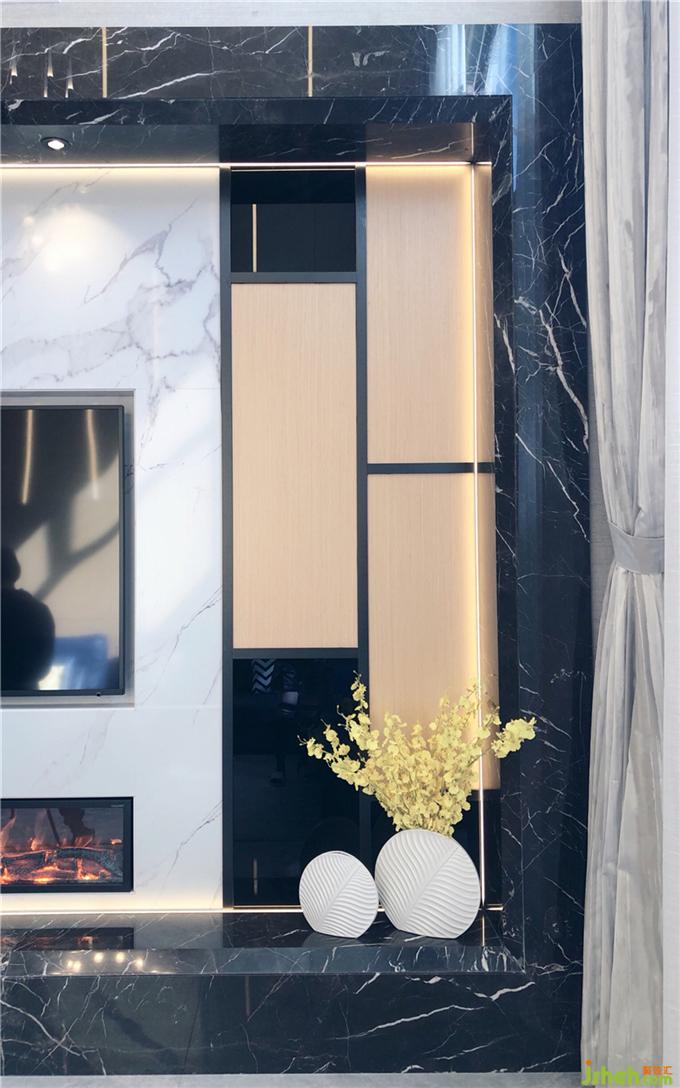 在光影交織的另一面,由黑色大理石精心雕琢而成的電視墻,空間比例、材質(zhì)肌理、美學(xué)觸感,都將簡(jiǎn)約主義的氣質(zhì)詮釋的恰如其分。