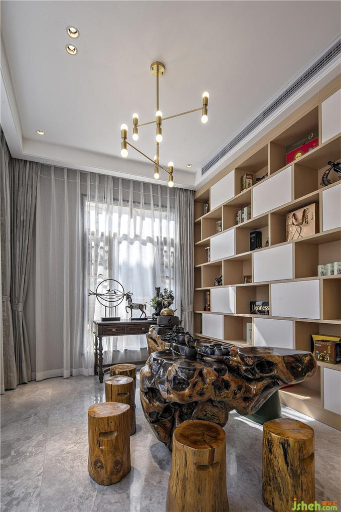 從餐廳到茶室的寥寥幾步,營(yíng)造的意境卻全然不同,餐廳洋溢著令人暖心的和睦,茶室卻自然而然令人心靜,仿佛身處深山林木中,落地窗內(nèi)眺望園景,一呼一吸間,身心放松,以此生智慧,參悟人生大道。