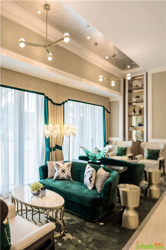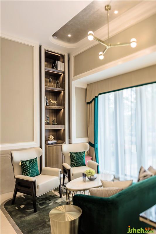 在固有的硬裝色系色中調(diào)以米白、深咖、淺咖的暖色調(diào),使整體空間有一種舒適的感覺,再配合軟飾的翡翠綠,空間整體上突現(xiàn)一種靈動(dòng)!豐富的氛圍,契合翡翠項(xiàng)目的主色調(diào),并貫穿始終,讓空間有一種非凡的氣質(zhì)。