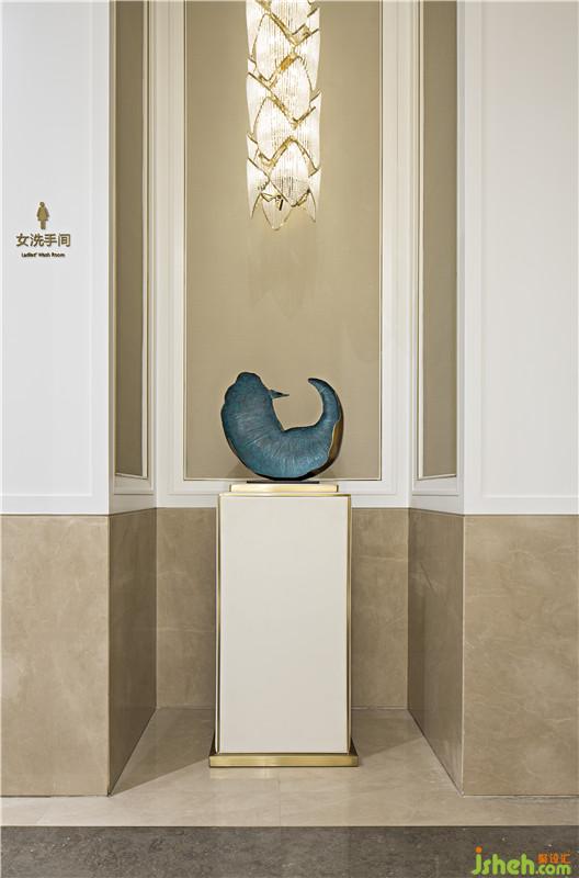 家具、面料的選擇在工藝和環(huán)保上都及其講究,有繁有簡(jiǎn),造型優(yōu)美,以暖色調(diào)為主由淺至深層次豐富;不銹鋼搭配玻璃和石材,襯托出華貴的氣質(zhì);布藝選料注重手感粗磨,并選以少許ART DECO放射狀元素圖案進(jìn)行搭配,契合硬裝主題,共同構(gòu)造獨(dú)特的物象之美。