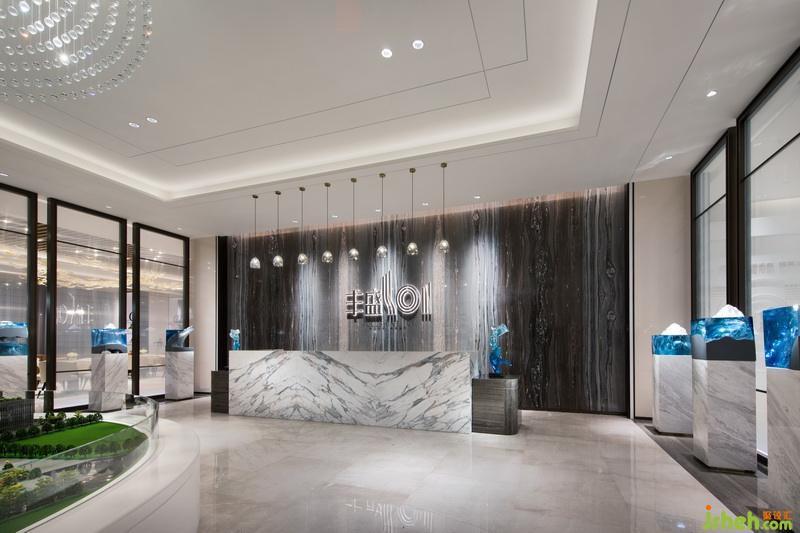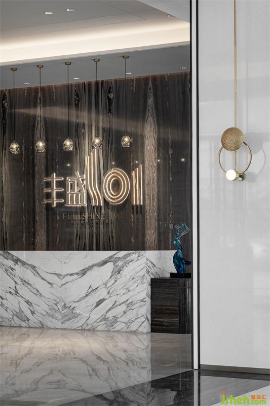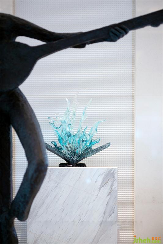 體驗(yàn)中心裝修設(shè)計(jì)回歸水系主題——海藍(lán)般清新的樹(shù)脂藝術(shù)雕塑,與白玉色石材上3D雕刻拉槽的精雕技藝,在理性與藝術(shù)的碰撞中,拒絕平庸,激起非凡豐盛的生命水花,無(wú)處不在的彰顯出豐盛101的匠心精神。