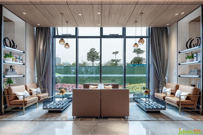在大量的精雕石材與雅致金屬的空間中,碰撞出現(xiàn)代輕奢的時(shí)尚意味,“豐碩·樂(lè)活”的美好氣息糅合著愛(ài)馬仕之橙的魅力馨香撲面而至。棕橘色皮質(zhì)沙發(fā)間映照的希望之光燈飾與茶幾象征能源涌動(dòng)的裝飾造型,暗藏豐碩力量的玄機(jī)。