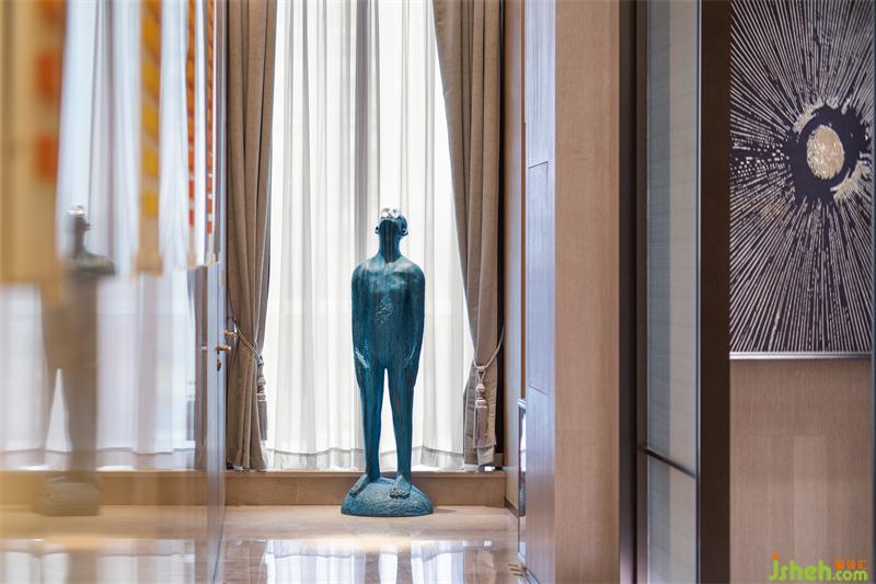 藝術(shù)走廊的盡頭,靜靜駐立著烏克蘭藝術(shù)家Nazar Bilik的雕塑作品《雨》,讓二層空間回歸到了“源泉”的主題,人與自然的心靈感應(yīng),正是豐樂(lè)集團(tuán)當(dāng)下探索的人與建筑的自然和諧,綠色人居品質(zhì)的不斷追求以及對(duì)美好生活締造的思考與期許。