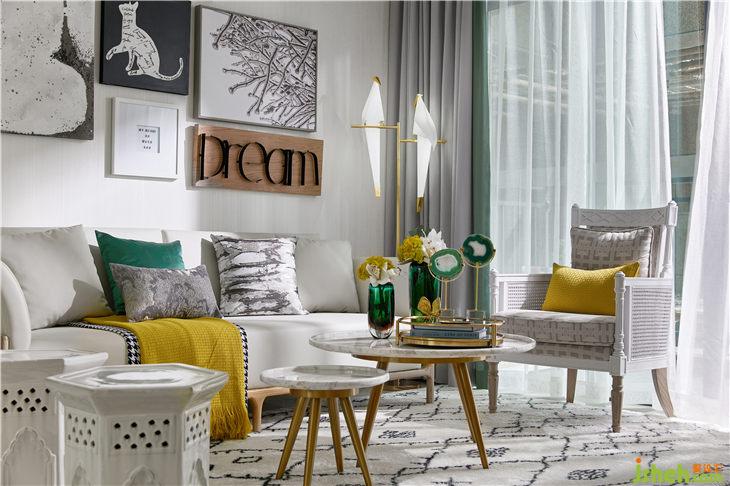 項(xiàng)目是豐泰集團(tuán)虎門風(fēng)華豪苑精裝交樓樣板房的軟裝設(shè)計(jì)。隨著近幾年的發(fā)展及國家環(huán)保要求,之前豪裝樣板房慢慢的退出了設(shè)計(jì)的舞臺(tái),隨之而來的是交樓標(biāo)準(zhǔn)的裝修樣板房設(shè)計(jì)。此項(xiàng)目就是一個(gè)典型的交樓標(biāo)準(zhǔn)設(shè)計(jì)的案例,原開發(fā)室內(nèi)設(shè)計(jì)是標(biāo)準(zhǔn)化的交樓裝修,內(nèi)含地面鋪貼與天花簡單燈槽、墻面白色I(xiàn)CI油漆、櫥柜、衛(wèi)生間等。我們接手這個(gè)這個(gè)案子之后重新給項(xiàng)目確定軟裝主題設(shè)計(jì)---新中式混搭。主基調(diào)在遵循原有的白色基調(diào),以淺木色作為家具的主要色調(diào),輔以明快的綠色、檸檬黃色來活躍空間的氣氛,使整個(gè)項(xiàng)目呈現(xiàn)出清晰大自然的感覺,花草的芳香彌漫四方······