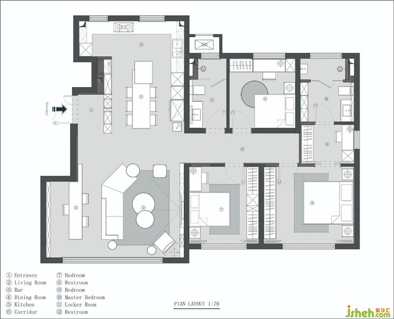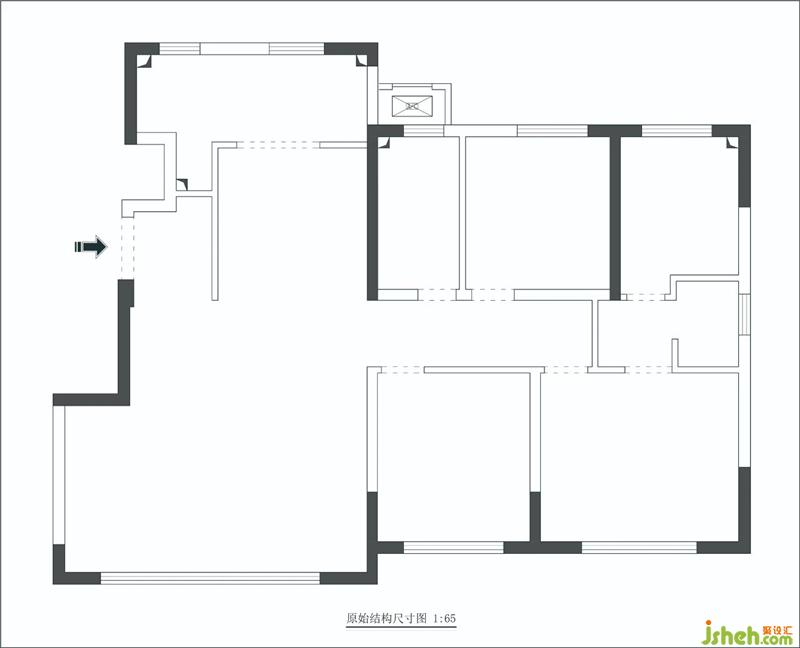 本案原始戶型是一套中規(guī)中矩的精裝房,自身結(jié)構(gòu)相對(duì)適合。但對(duì)于一個(gè)四口之家來說,居住空間就顯得過于緊湊,且儲(chǔ)物功能不足、空間缺乏交流感天津裝修設(shè)計(jì)。