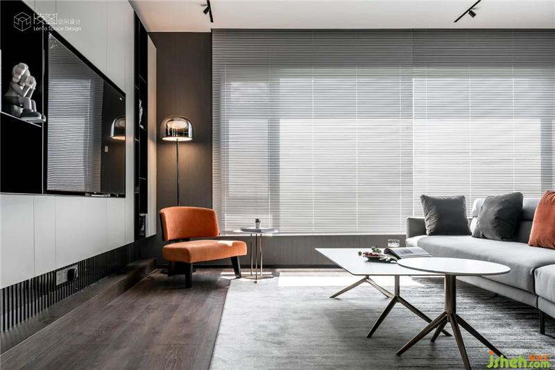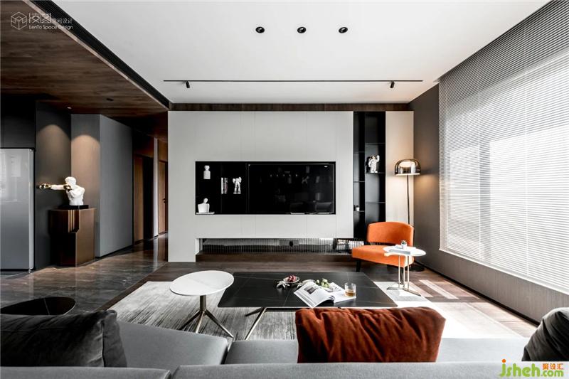 黑、白、灰、橙四種不同色調(diào),冷暖錯(cuò)落,層次分明,讓空間色彩更加立體豐富。