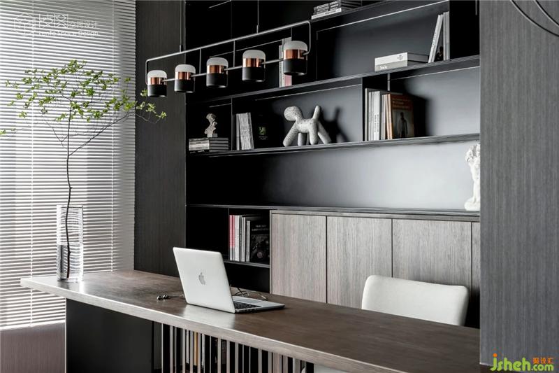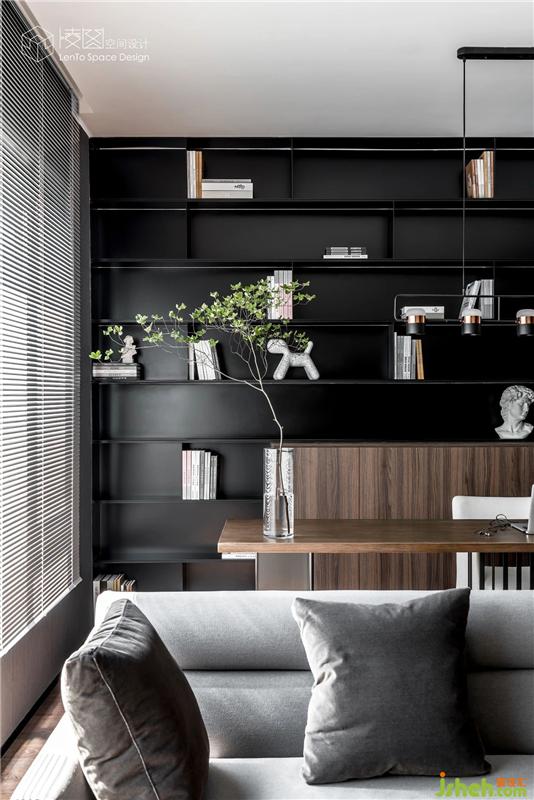 原有不規(guī)則的小空間,被打造成開放式書房兼茶室功能,提升了空間的交流感,
